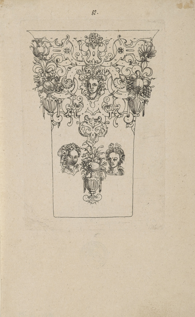 Print, Plate from 12 Stick Zum Verzaighnen Stechen Ver Fertigt (Set of Twelve Designs for Engraved Vessels); Print Maker: Bernhard Zan (Germany, active ca. 1580); Germany; punch engraving, pen and black ink, graphite on off-white laid paper; Sheet: 29.5 x 18.5 cm (11 5/8 x 7 5/16 in.) Platemark: 19.3 x 13 cm (7 5/8 x 5 1/8 in.); Museum purchase through gift of Mrs. John Innes Kane; 1942-36-13