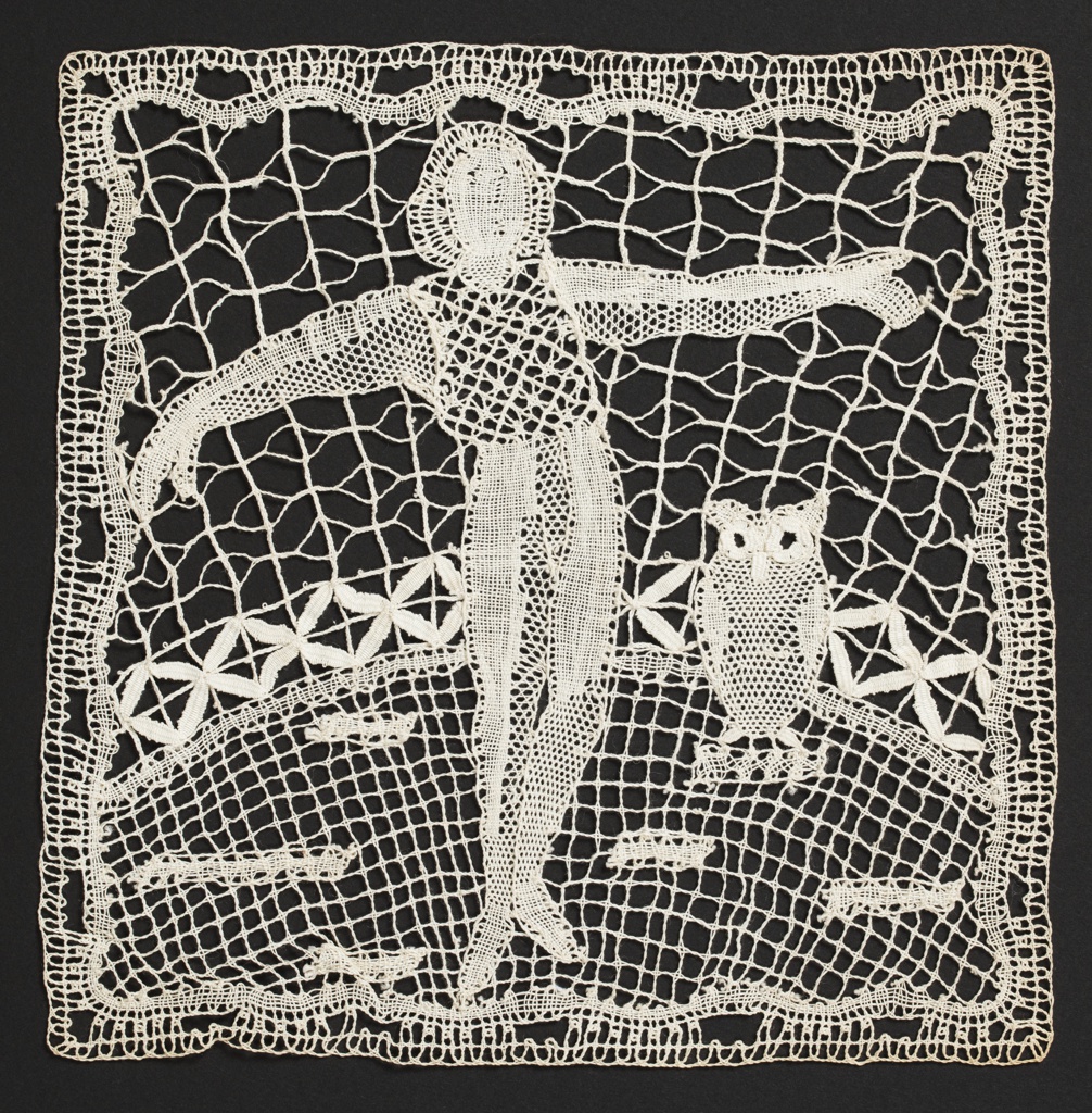 This is a Doily. It was designed by Anny Schröder and manufactured by Wiener Werkstätte. It is dated 1922 and we acquired it in 2018. Its medium is linen and its technique is bobbin lace. It is a part of the Textiles department.