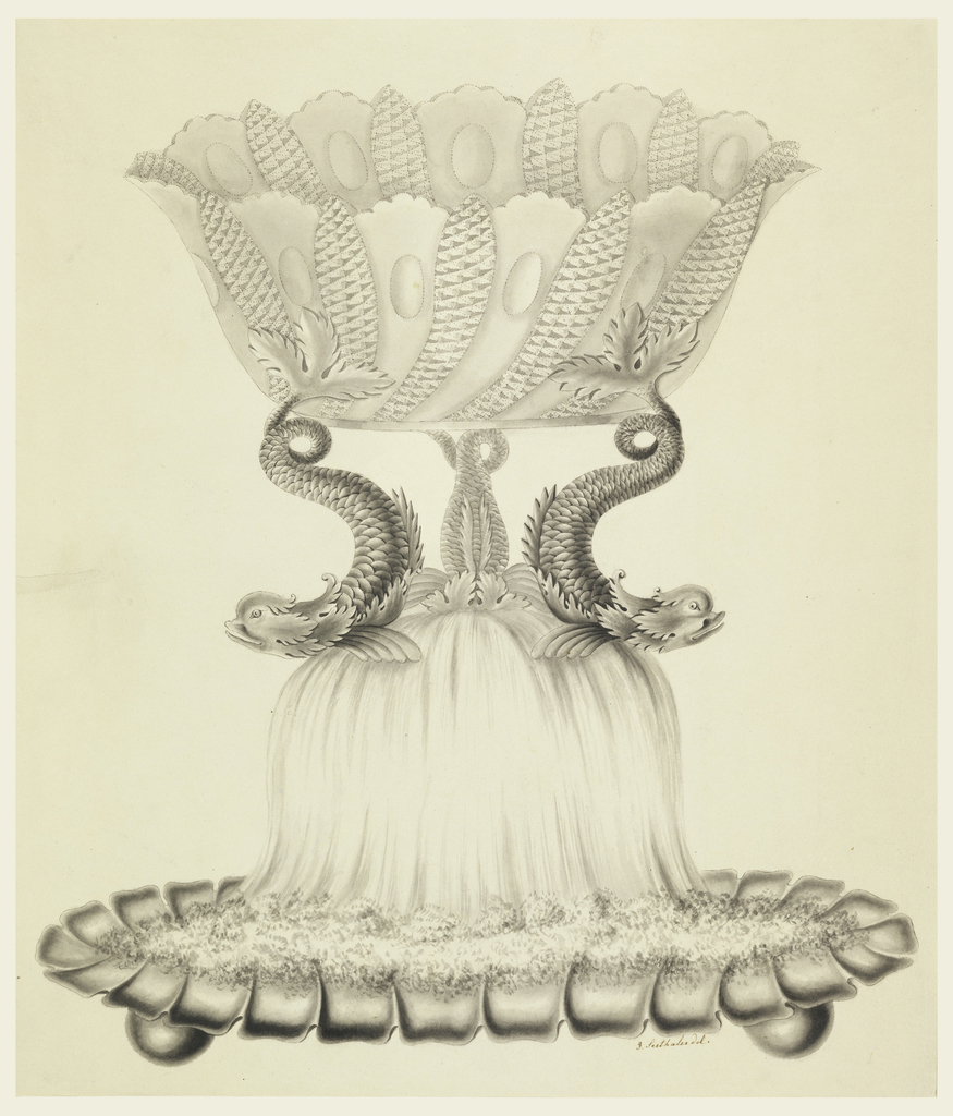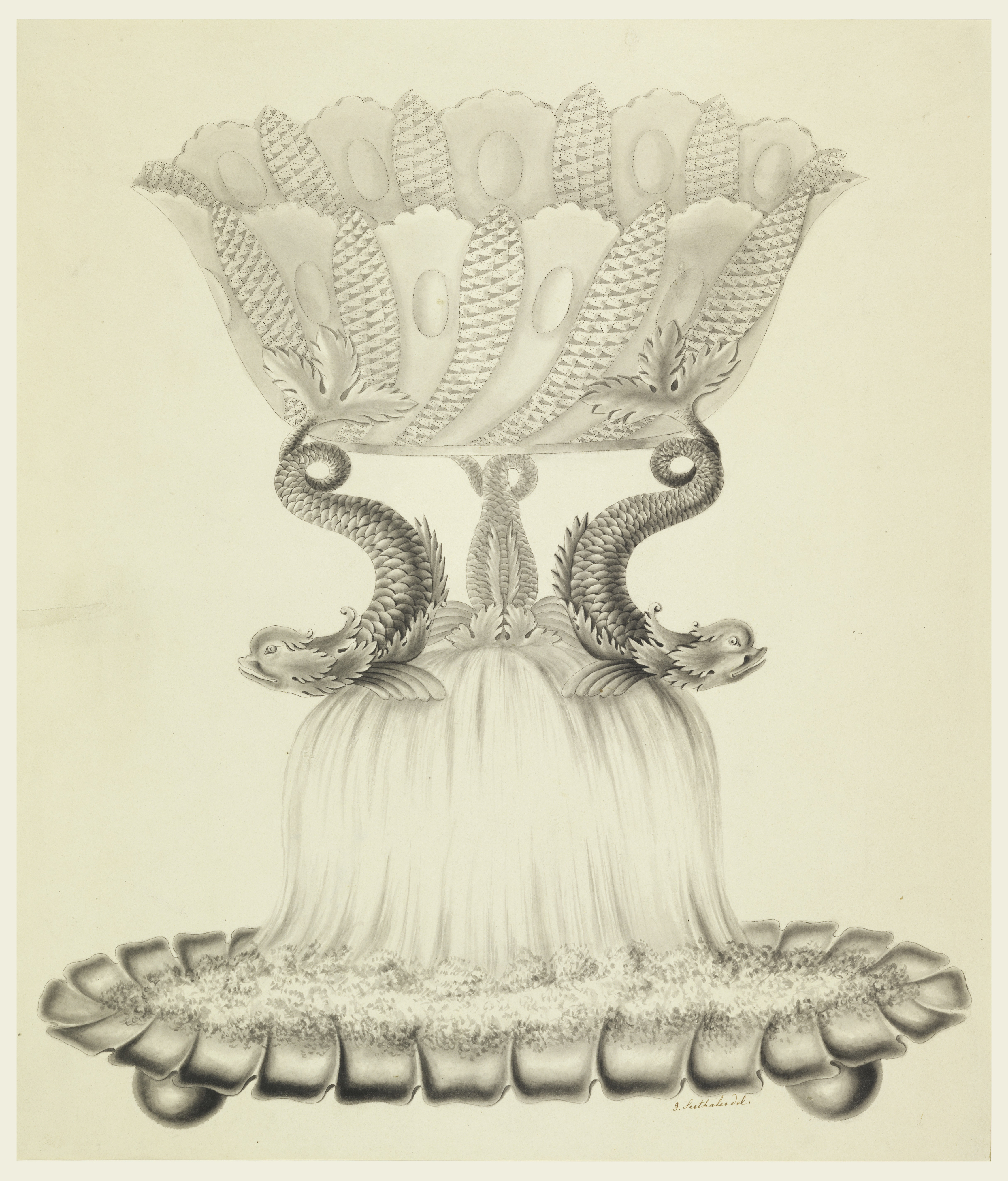 Drawing, Design for a Silver and Crystal Compote; Designed by Joseph Anton Seethaler II (German, 1799–1868); Germany; pen and black ink, brush and wash on paper; 38 x 33.5 cm (14 15/16 x 13 3/16 in.); Purchased for the Museum by the Advisory Council; 1911-28-328