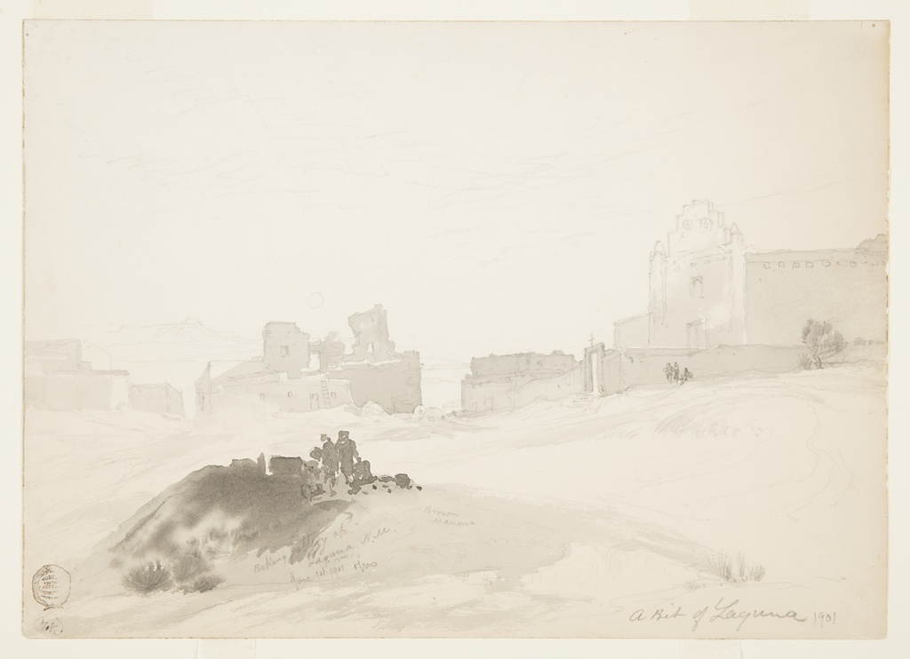 Recto: Inscribed in graphite, lower right: Baking pottery at / Luguna, N. M. / June 1st 1901 T M/ Brown manure/ A bit of Laguana 1901. Verso: Inscribed in ink, upper left corner: No. 303