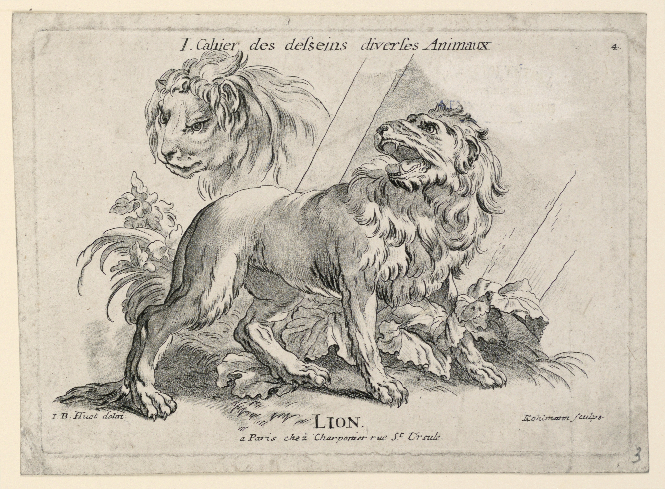 Engraving, Studies of Lions, Plate 4 from "Cahier des Desseins Diverses Animeaux"