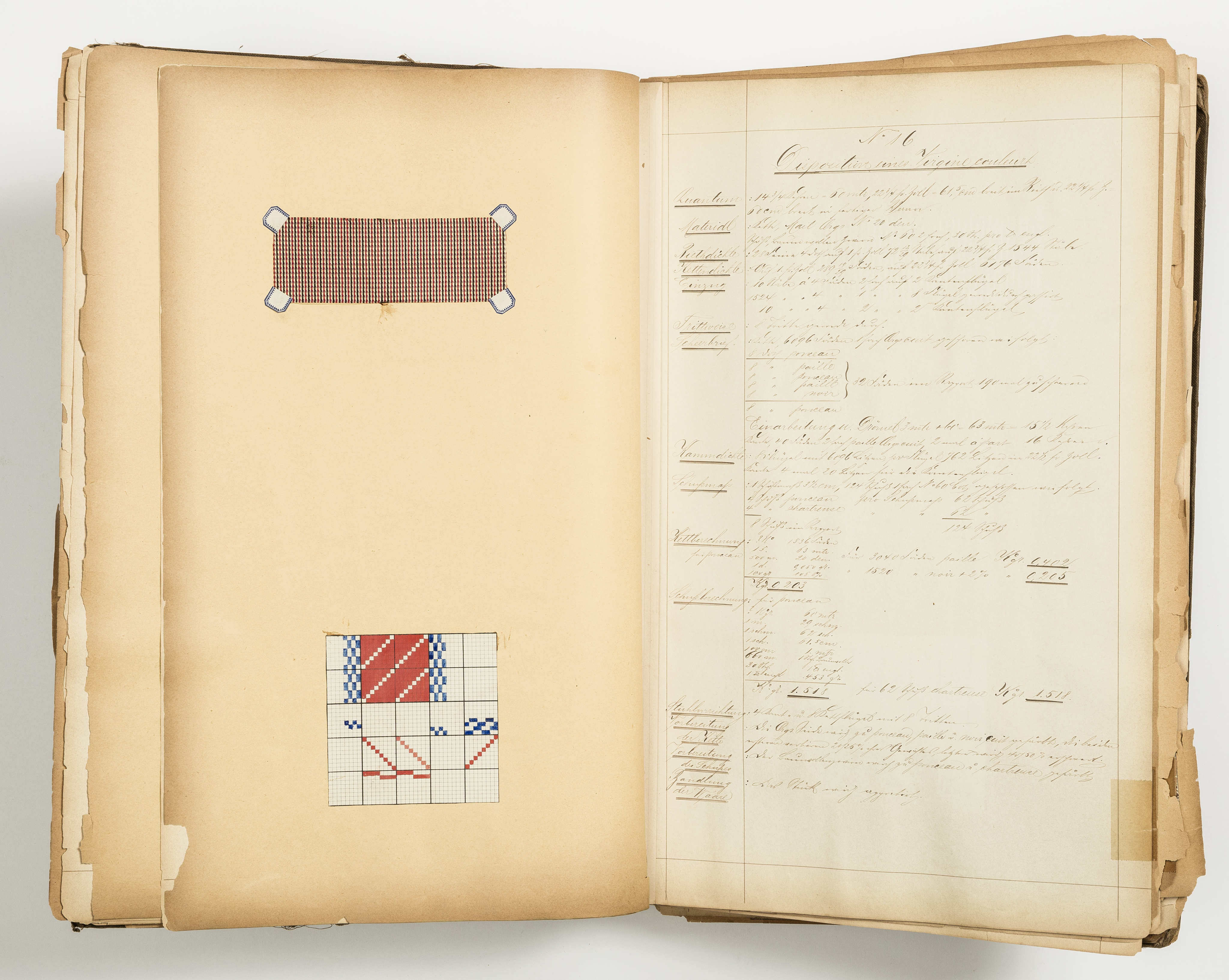 This is a Weaver's thesis book. It is dated 19th century and we acquired it in 1938. Its medium is buckram, paper. It is a part of the Textiles department.