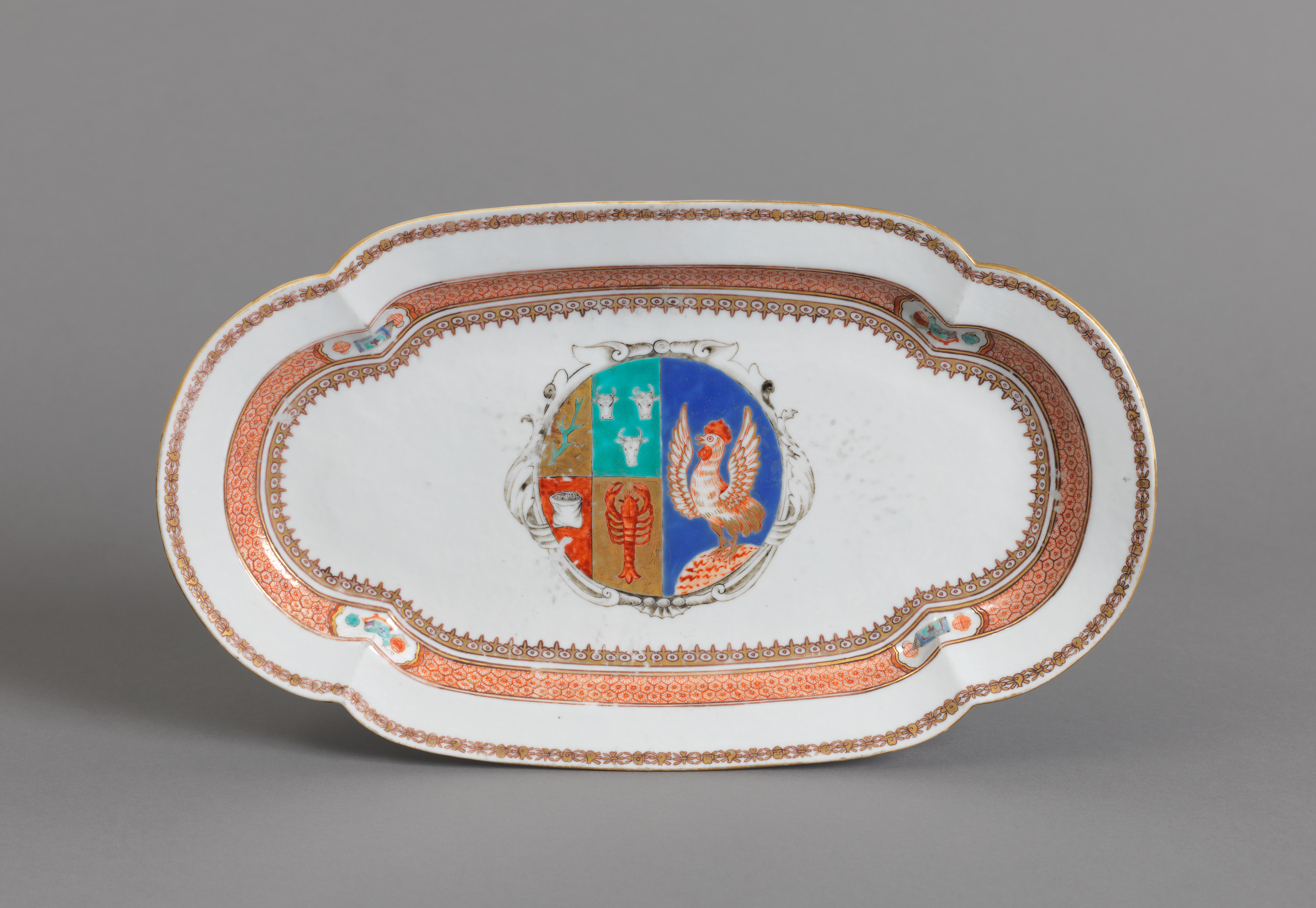 This tureen represents a primary focus in the early collecting of Asian objects: Chinese export ceramics. Erskine, one of Sarah and Eleanor’s brothers, may have collected the tureen for its unusual cartouche, which research has since discovered to be the “coat of arms” for an 18th-century family of Dutch grocers.