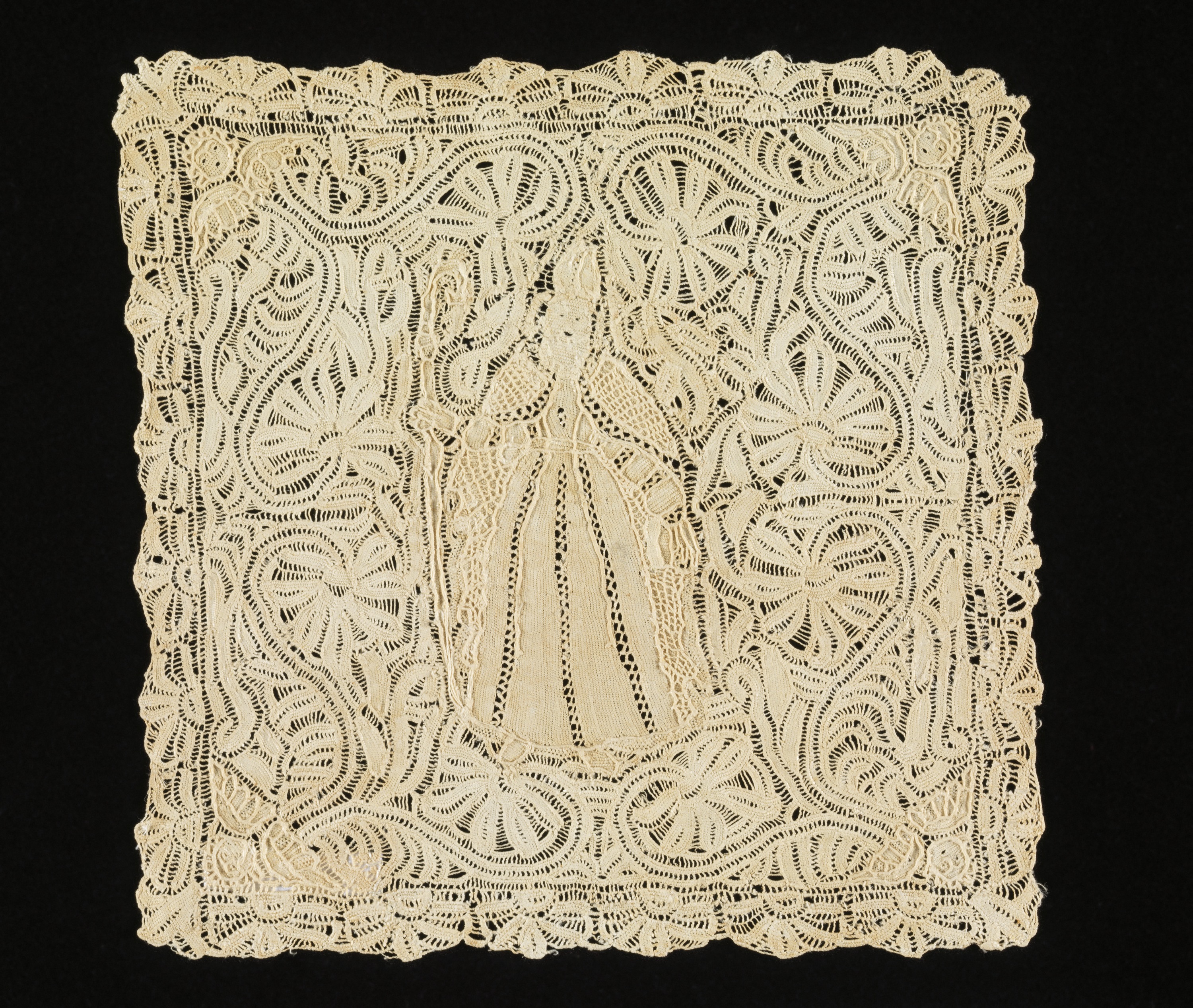 This is a Chalice cover. It is dated 17th century and we acquired it in 1962. Its medium is linen and its technique is needle lace. It is a part of the Textiles department.