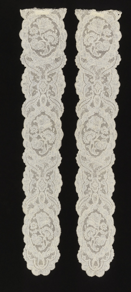 This is a Cap streamers. It is dated mid-18th century and we acquired it in 1962. Its medium is linen and its technique is bobbin lace, mechlin style. It is a part of the Textiles department.