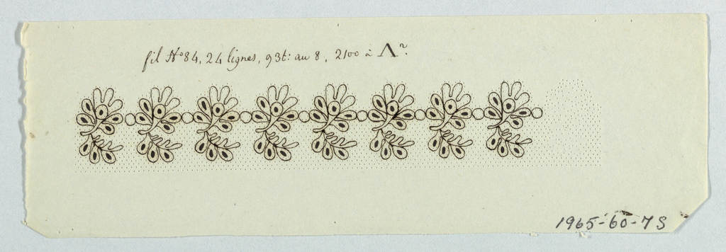 This is a pattern prickings. We acquired it in 1965. Its medium is paper, cardboard. It is a part of the Textiles department.