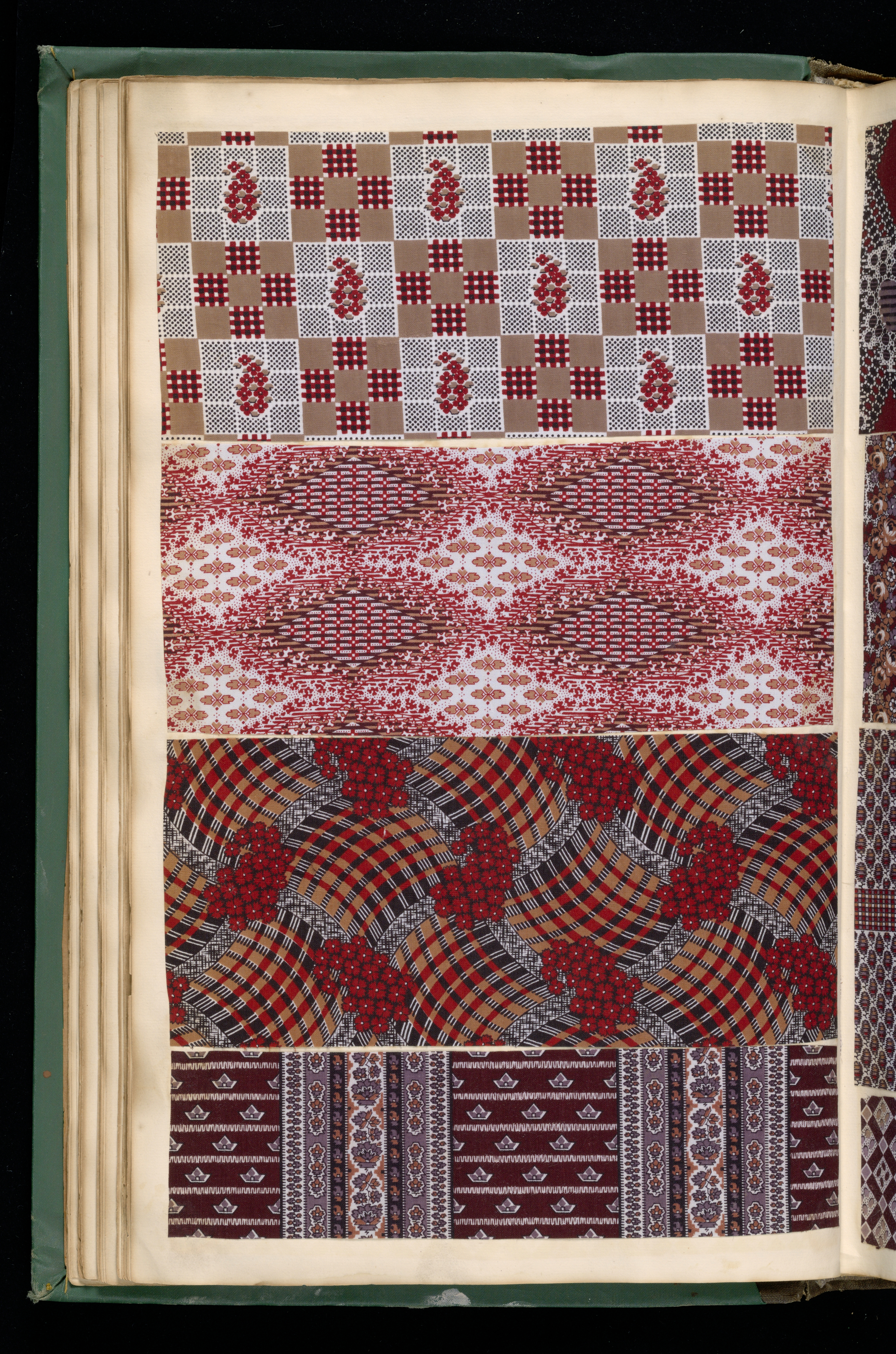 This is a Sample book. It is dated ca. 1857 and we acquired it in 1973. Its medium is cardboard, paper, cotton and its technique is printed. It is a part of the Textiles department.