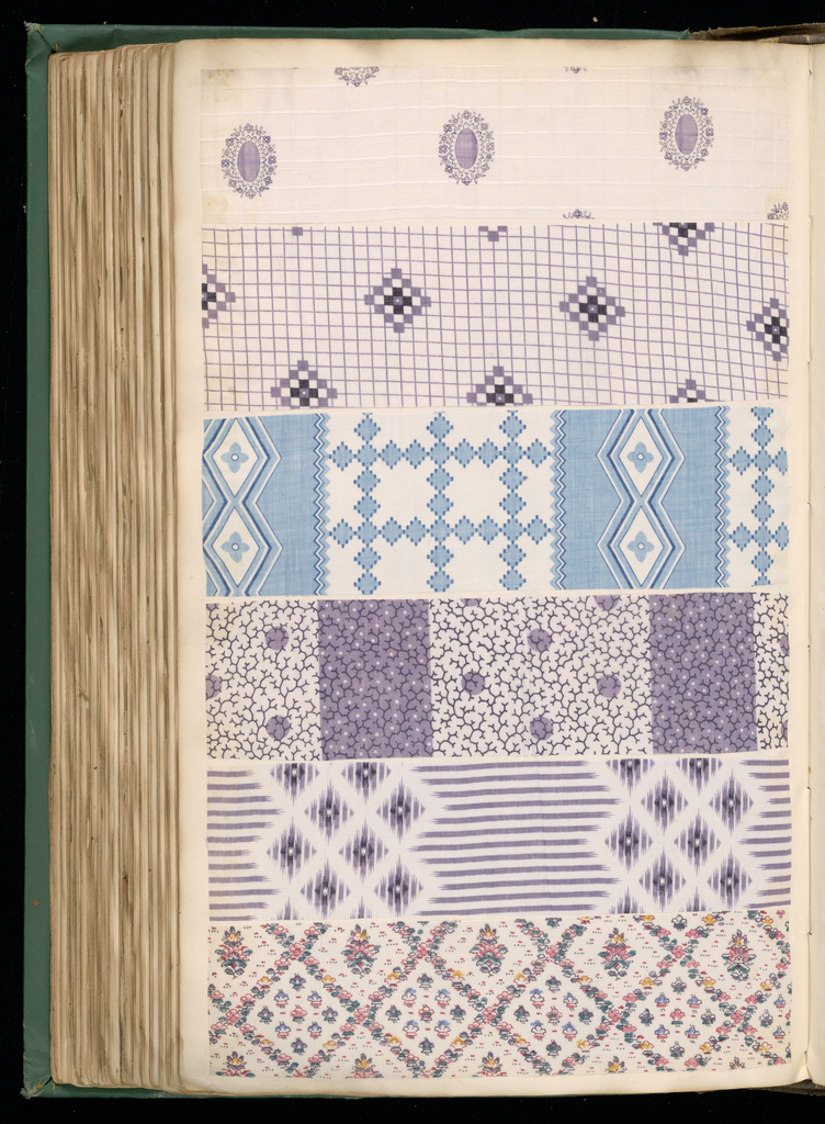 This is a Sample book. It is dated ca. 1857 and we acquired it in 1973. Its medium is cardboard, paper, cotton and its technique is printed. It is a part of the Textiles department.