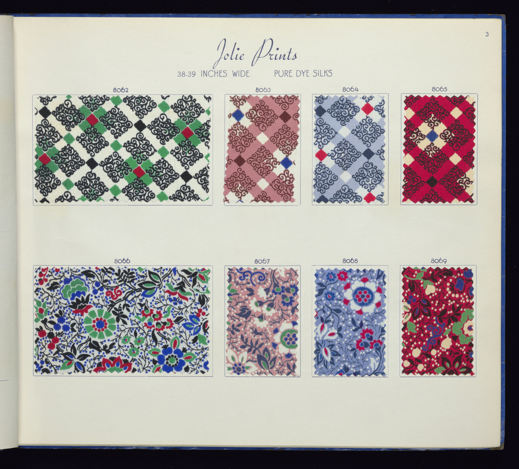 This is a Manufacturer's sample book. It is dated 1939 and we acquired it in 1939. Its medium is silk, rayon, linen, paper and its technique is printed. It is a part of the Textiles department.