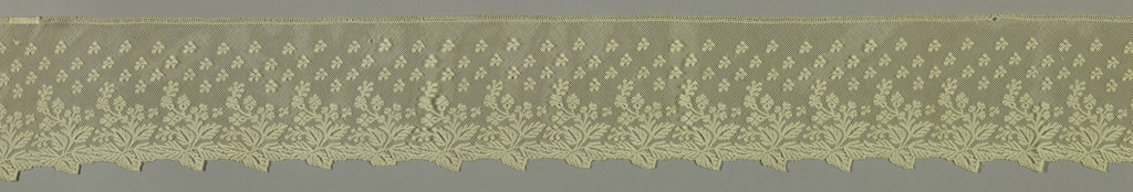 This is a Borders (five). It is dated 19th century and we acquired it in 1939. Its medium is linen and its technique is bobbin lace, late valencienne ground. It is a part of the Textiles department.