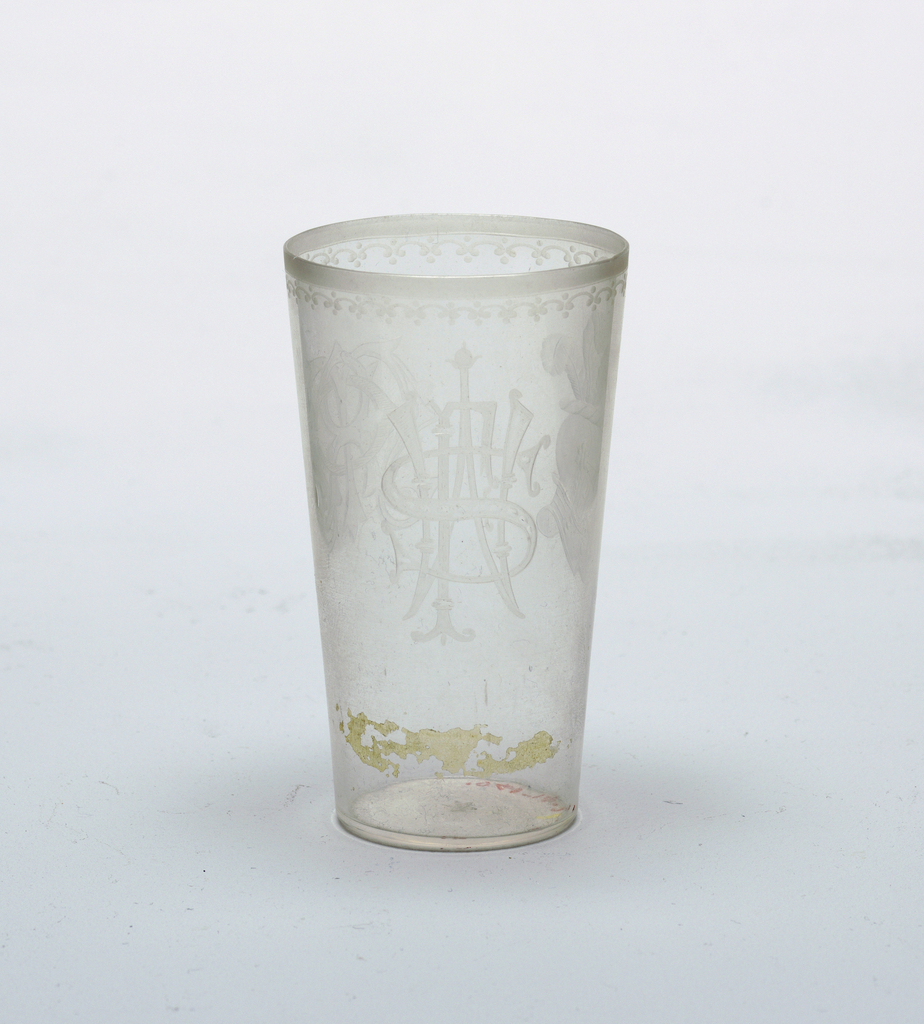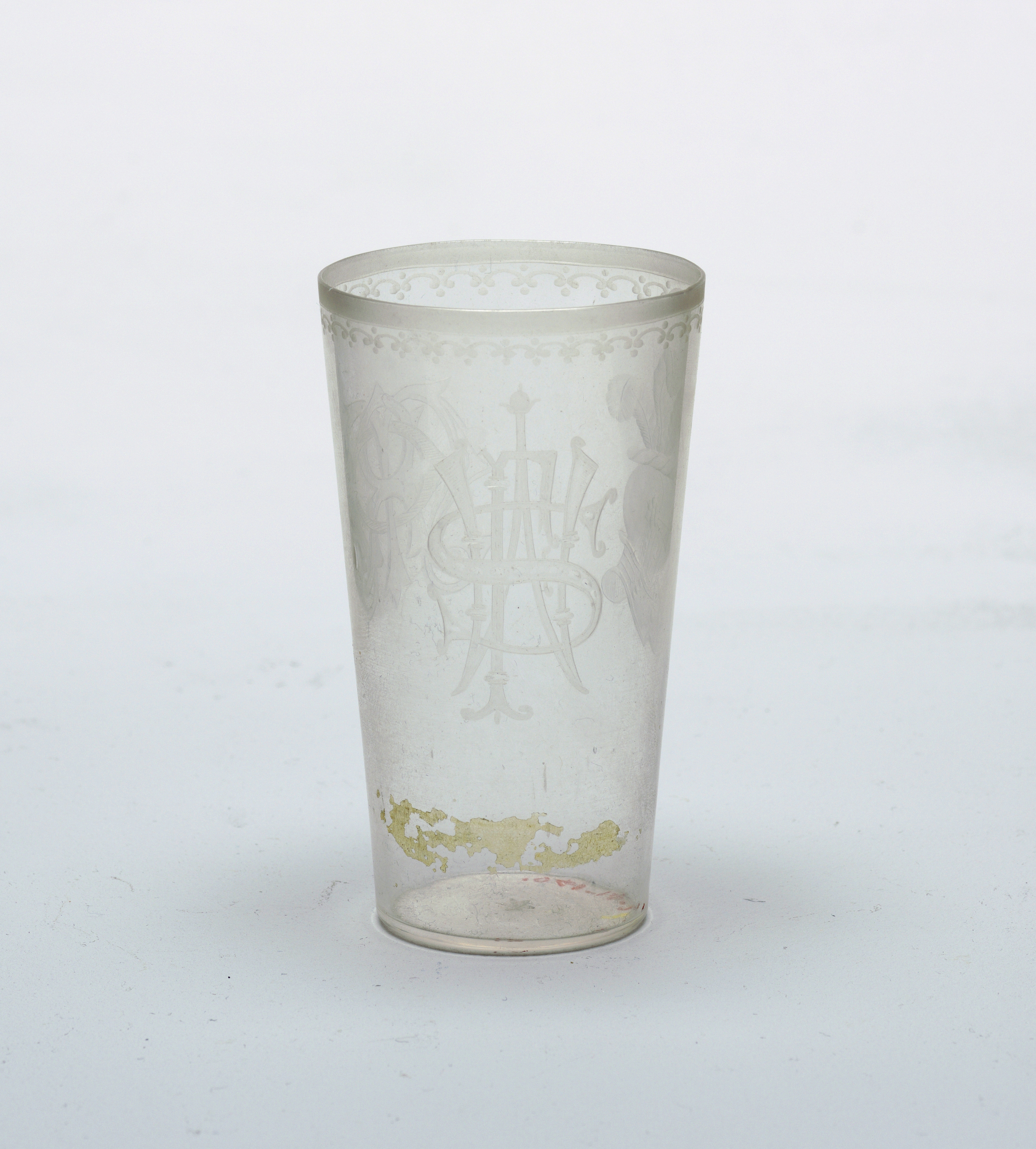 This is a beaker. It is dated ca. 1880 and we acquired it in 1941. Its medium is glass. It is a part of the Product Design and Decorative Arts department.