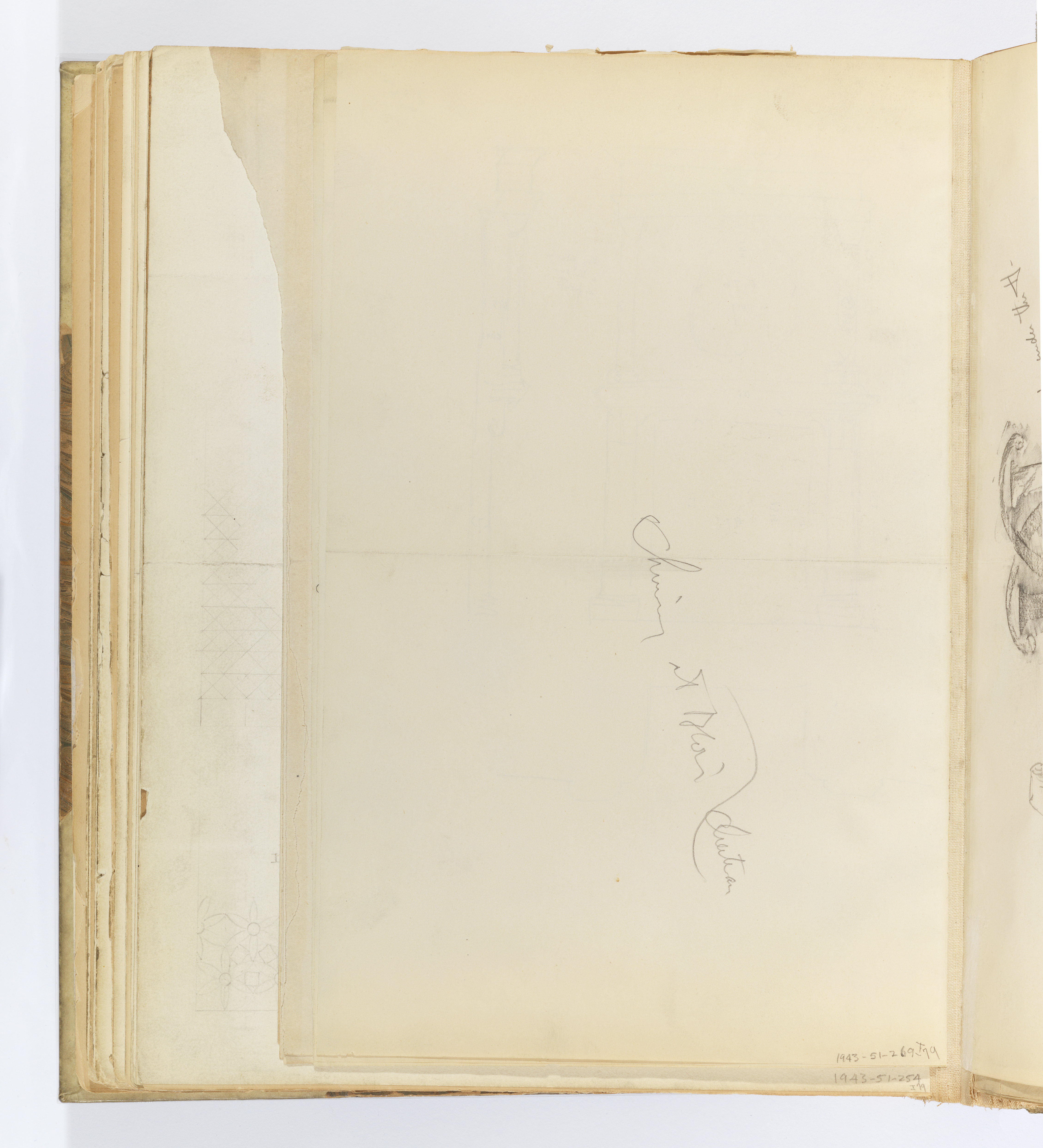 Album Page, Sketches of Pilaster and Architectural Details, Possibly from a Fireplace at Château de Blois, France; Whitney Warren Jr. (American, 1864–1943); France; graphite on very smooth, off-white wove paper tipped into binding with fabric; Sheet: 20 x 31.1 cm (7 7/8 x 12 1/4 in.), irregular; Gift of Mrs. William Greenough; 1943-51-269
