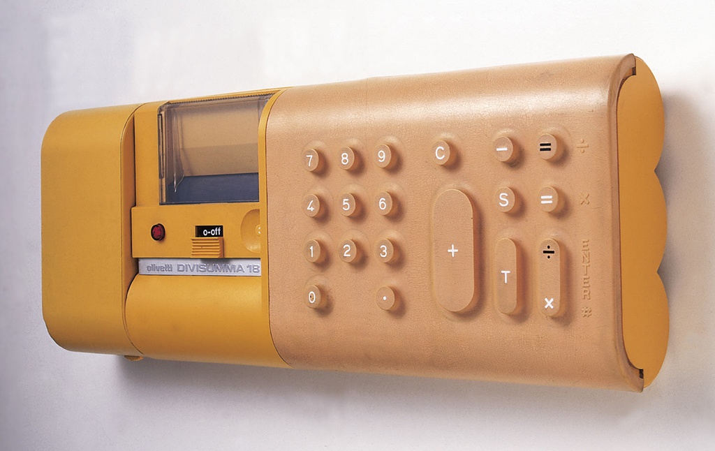 With the intent to design a piece of “totally humanized” office technology, Bellini attracted a new breed of consumer with the Divisumma 18 calculator’s colorful, tactile form. The stylish design made use of revolutionary synthetics like ABS plastic, melamine resin, and an inviting rubberized skin covering the keyboard buttons. Produced in a bright golden hue, it sat smartly on desks as a reminder of the sense of play that design could bring to even the most formal environments.