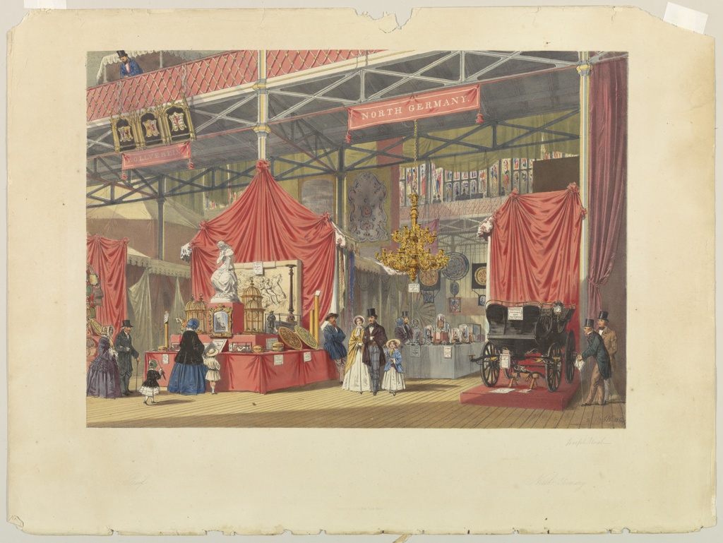 Print, North Germany. Plate from "Dickinson's Comprehensive Pictures of the Great Exhibition of 1851," published 1854.; Made by Joseph Nash The Elder (British, 1808 - 1878); England; lithograph; Image: 34 x 48.6 cm (13 3/8 x 19 1/8 in.); Gift of Ashton Hawkins; 1998-65-1