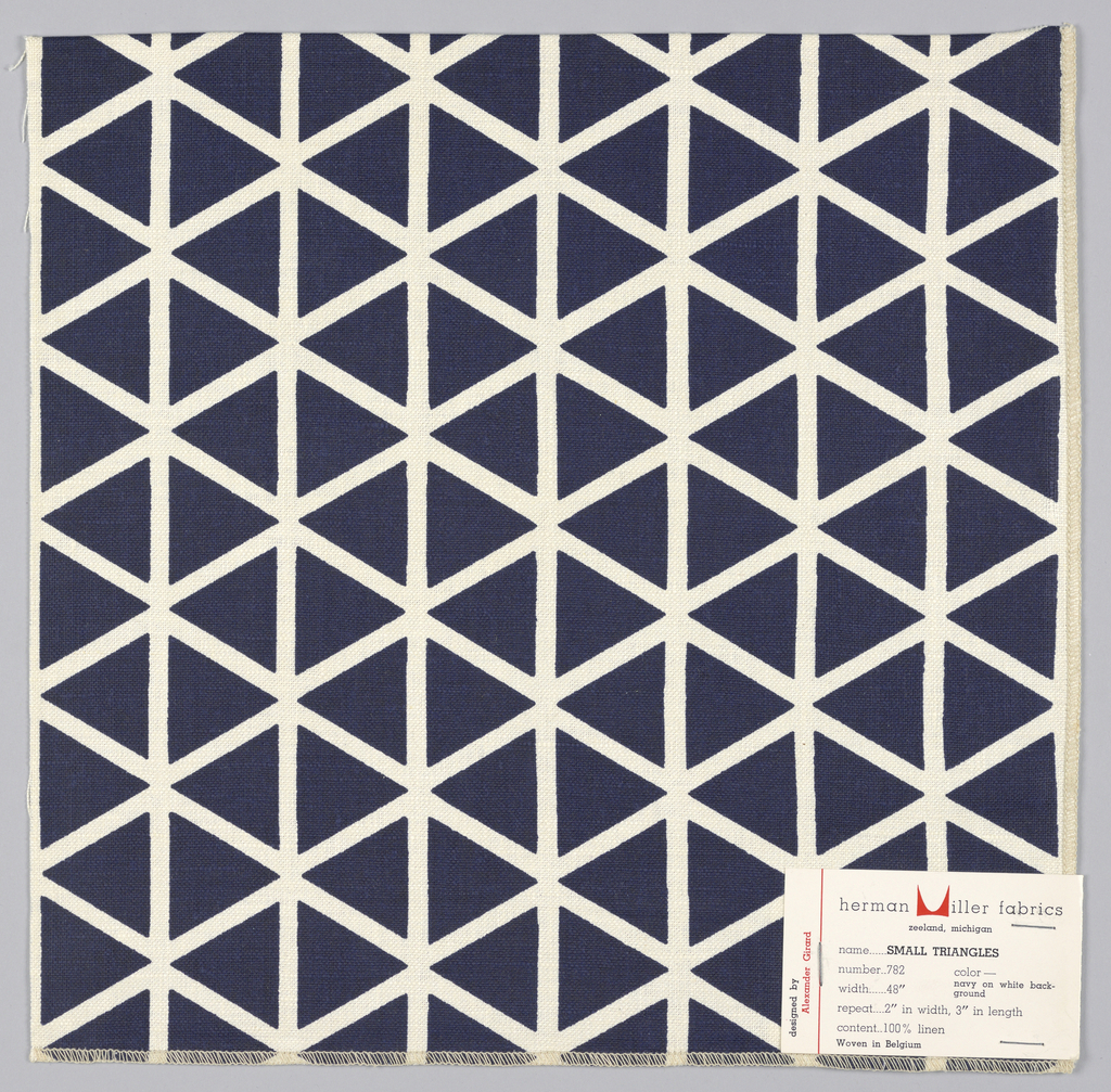 Sample, Small Triangles; Designed by Alexander Hayden Girard (American, 1907–1993); Produced by Herman Miller Furniture Company (United States); Belgium; linen; Warp x Weft: 31 x 30.5 cm (12 3/16 x 12 in.); Gift of Alexander H. Girard; 1969-165-157