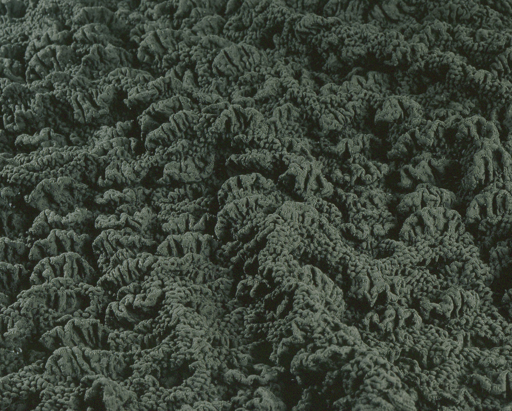 This textile was designed in 1998 and manufactured in 2004 by Palmhive® Technical Textiles in England for the United Kingdom’s Ministry of Defence. It is composed of knitted polyester and Lycra and acts as three-dimensional camouflage for tanks and other military equipment. It is produced in the traditional camouflage colors of green, black, and khaki. The sculptural and highly textured surface of this stretch fabric disguises the large equipment it conceals.