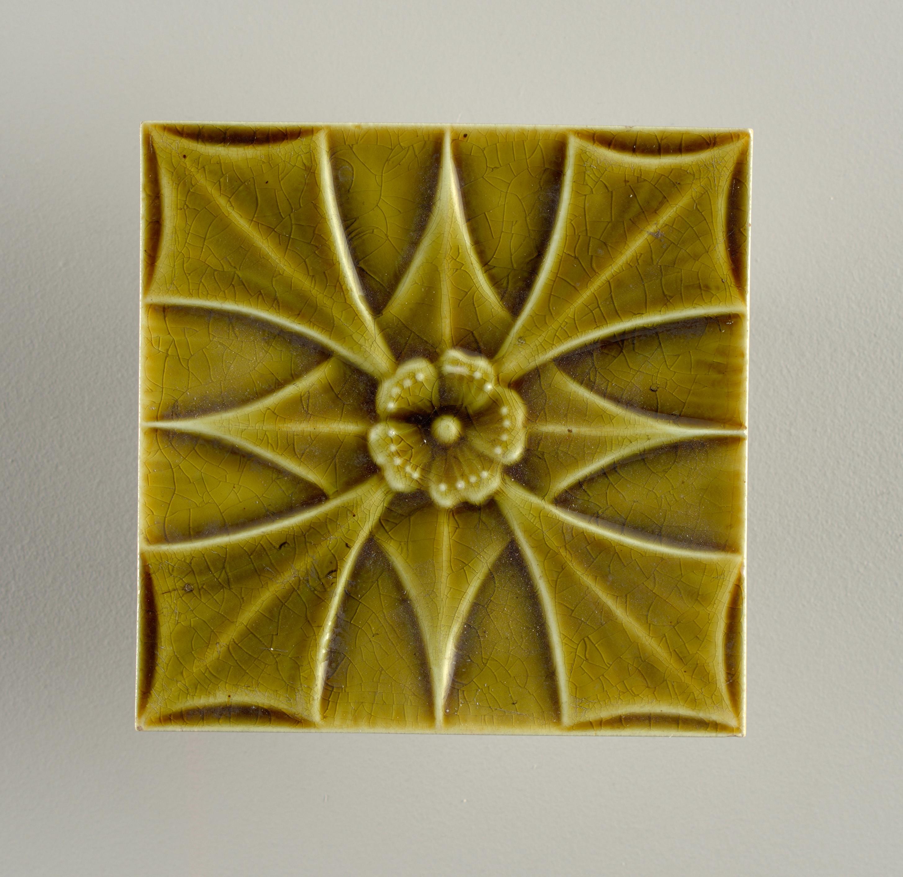 Tile (USA); Manufactured by J. & J. G. Low Art Tile Works; molded, glazed stoneware; 11 x 11 x .9 cm (4 5/16 x 4 5/16 x 3/8 in. ); Gift of Florence Barnes; 1981-56-45