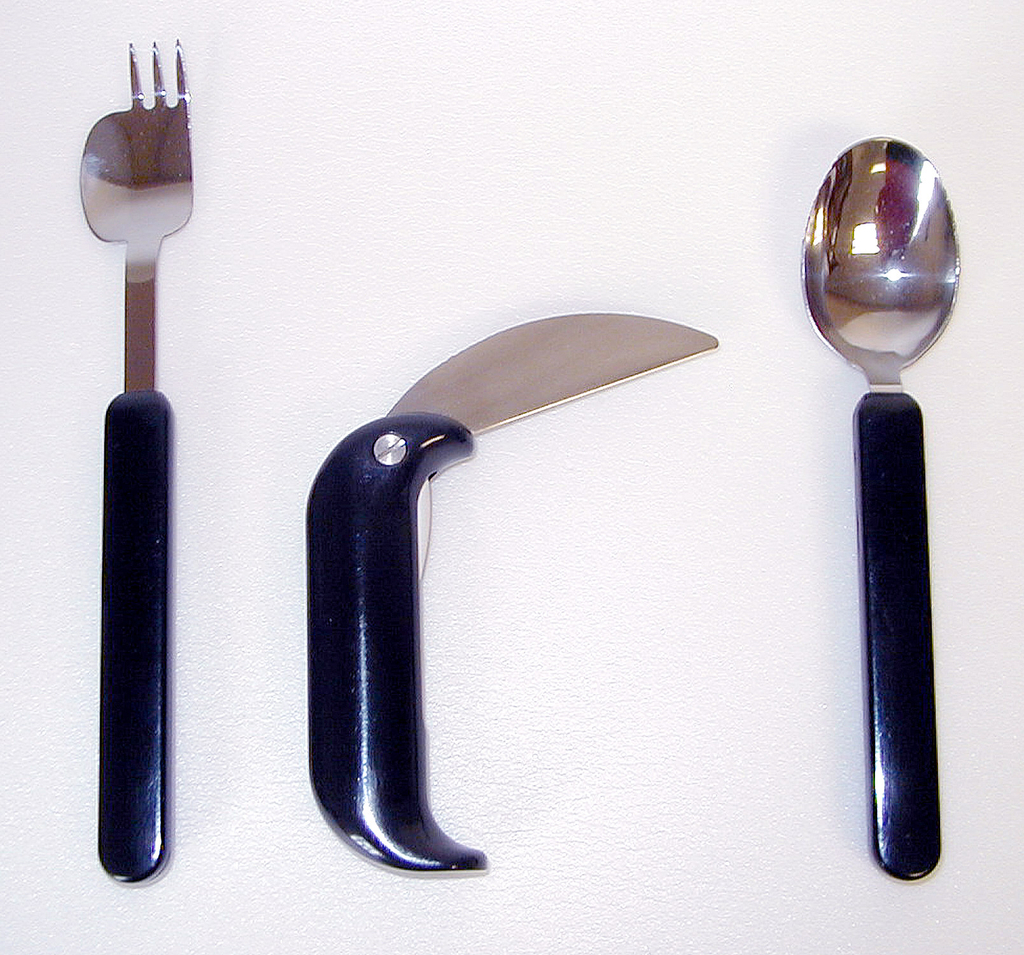 This is a Dinner fork. It was designed by Ergonomi Design Gruppen and design team member: Maria Benktzon and Sven-Eric Juhlin and manufactured by RFSU Rehab. It is dated 1981 and we acquired it in 1982. Its medium is stainless steel, plastic (melamine, polycarbonate). It is a part of the Product Design and Decorative Arts department.