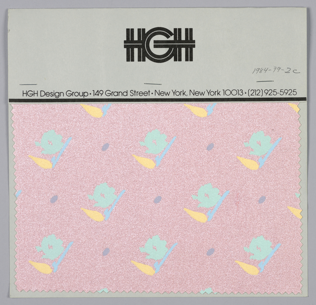 This is a Samples. It was designed by HGH Design Group. It is dated 1983–84 and we acquired it in 1984. Its technique is quilted and printed. It is a part of the Textiles department.