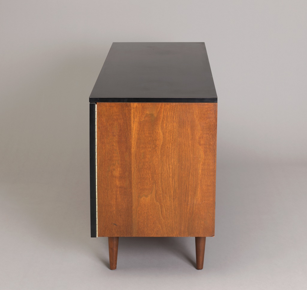 Buffet Buffet; Designed by Greta Magnusson Grossman (American, born Sweden, 1906 – 1999); Manufactured by Glenn of California (American); walnut, thermoset plastic, metal; H x W x D: 72.1 × 118.6 × 47.6 cm (28 3/8 × 46 11/16 × 18 3/4 in.); Museum purchase through the American Women's History Initiative Acquisitions Pool, administered by the Smithsonian Women's History Initiative and from General Acquisitions Endowment Fund; 2020-14-4